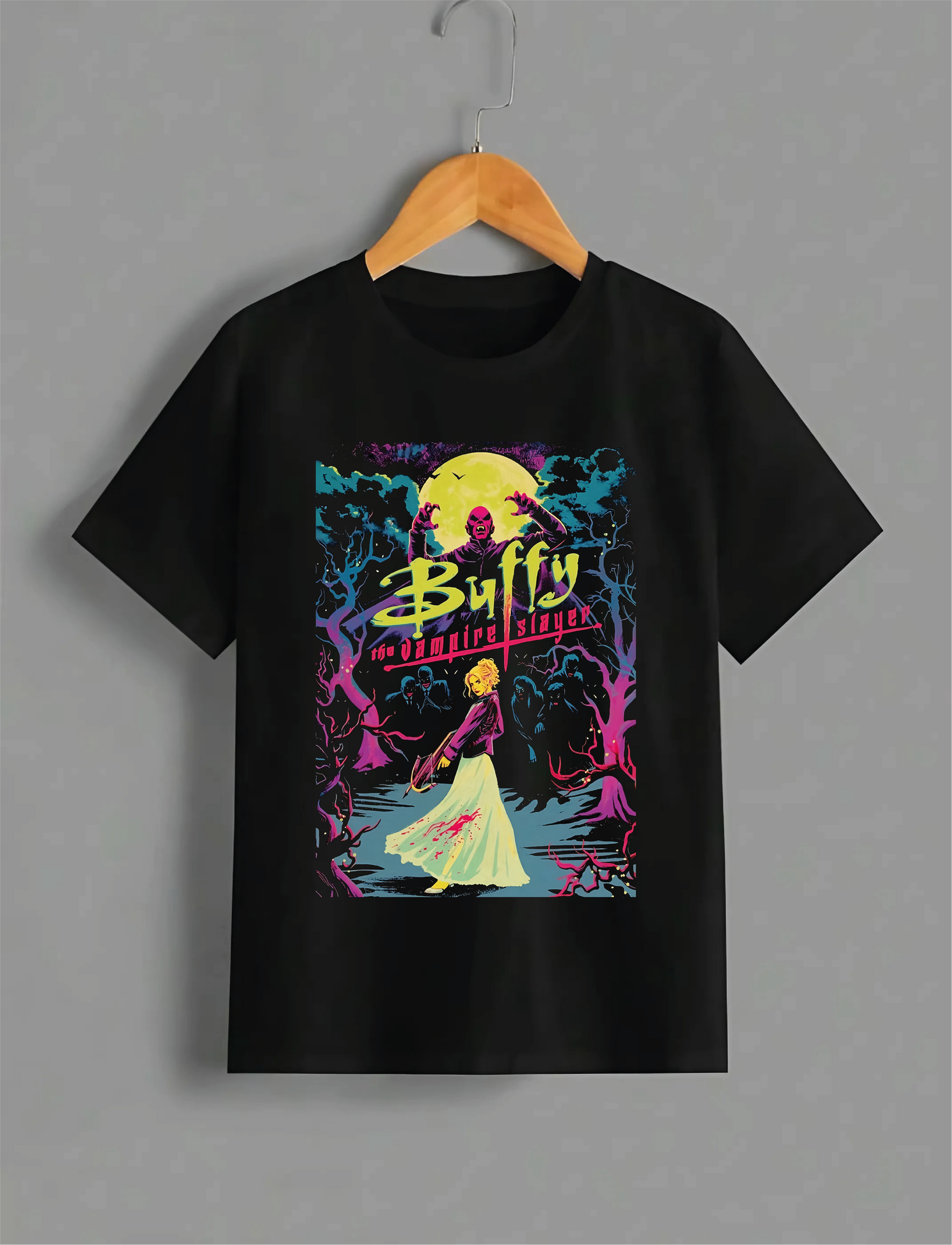 Ti presentiamo Buffy The Vampire Slayer, l'aggiunta definitiva al tuo guardaroba casual. Realizzata in 100% cotone, questa T-Shirt o Felpa offre una vestibilità comoda e relaxed, perfetta per l'uso quotidiano. Le grafiche uniche sono applicate a mano da noi, aggiungendo un tocco di individualità a ogni pezzo. E la parte migliore? Offriamo la spedizione gratuita su tutti i nostri articoli di abbigliamento, quindi puoi ricevere questa maglietta direttamente a casa tua senza costi aggiuntivi. Migliora il tuo look e distinguiti dalla massa.